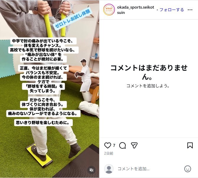アスリートに好評なゼロトレで、メニューを追加予定です。